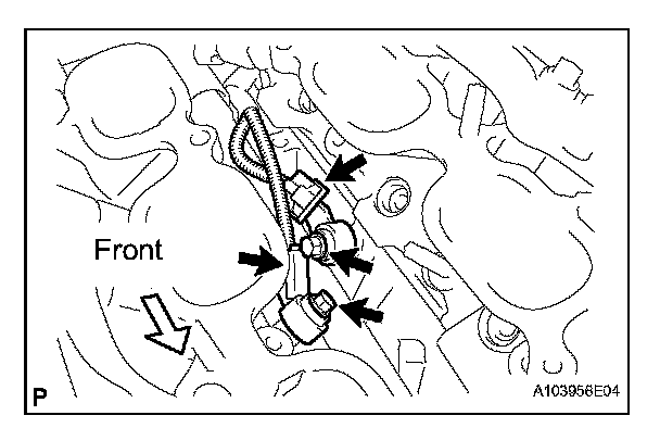 a. Install the 2 knock sensors so that they are horizontal as shown in the illustration. Then install the 2 bolts.