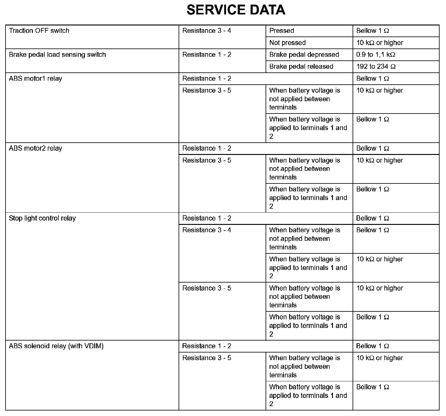 Brake Control - Service Data: