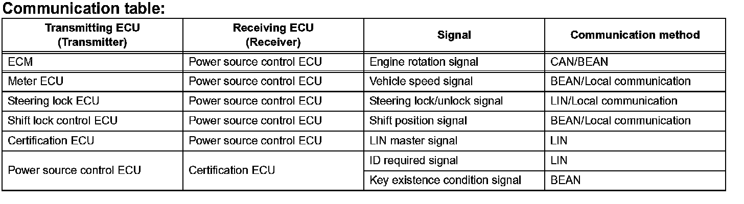 b. The power source control ECU transmits a key verification request signal from the stop light switch to the certification ECU.