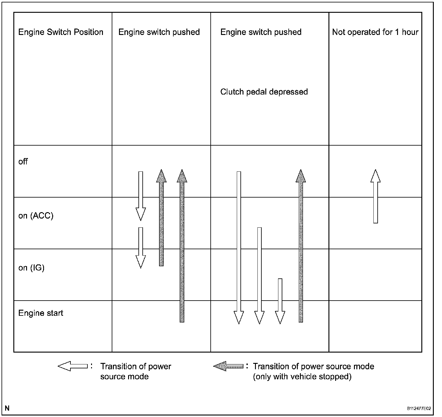 - After approximately 1 hour has passed with the engine switch on (ACC) and the power source control ECU will automatically cut the power supply (the power source mode changes to off).