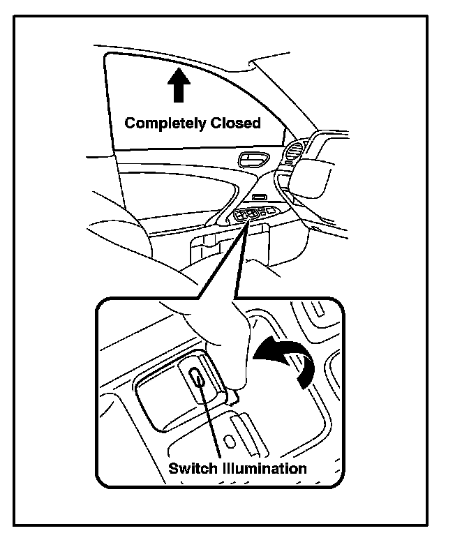 3. Pull up the driver's door power window switch until the window closes, and hold it for more than one second.
