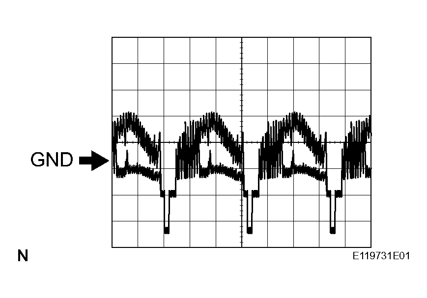 WAVEFORM 1Item Content Measurement terminal CV+ - CV- Measurement setting 0.2 V/DIV., 0.2 S/DIV. Condition Engine switch on (IG), Shift lever R position - MULTI-DISPLAY (See MULTI-DISPLAY )