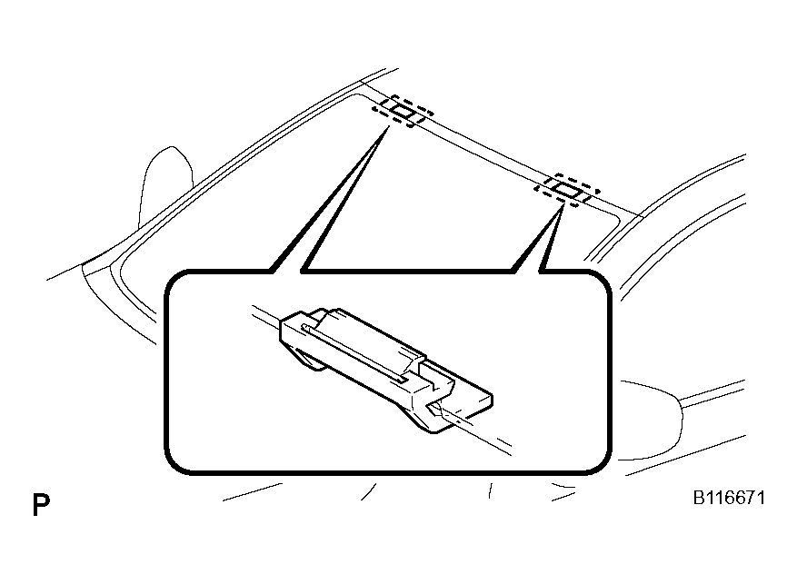 - Place reference marks between the glass and vehicle body.NOTE: Check that the stoppers are attached to the vehicle body correctly.
