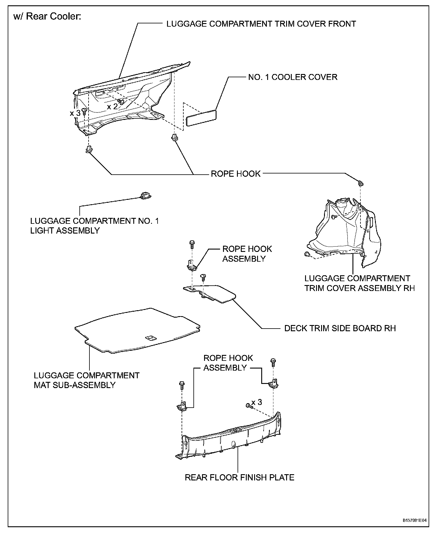 8. REMOVE LUGGAGE COMPARTMENT NO. 2 TRIM HOOK (w/o Rear Cooler)