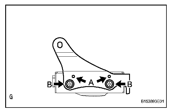 b. Install the bracket with the 2 bolts labeled B.