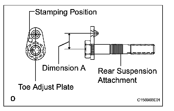 If the values are not within the specified range, adjust the installation bolt holding the rear suspension member to the vehicle body, or the bolt holding the upper control arm and rear suspension arm so that the values fall within the specified range.