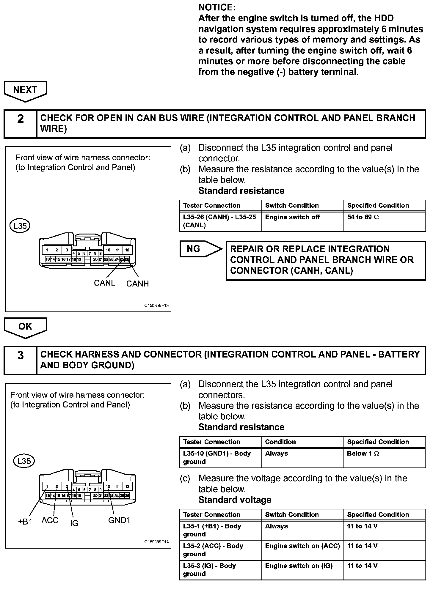 HINT: Operating the engine switch, any switches or any doors triggers related ECU and sensor communication with the CAN, which causes resistance variation.