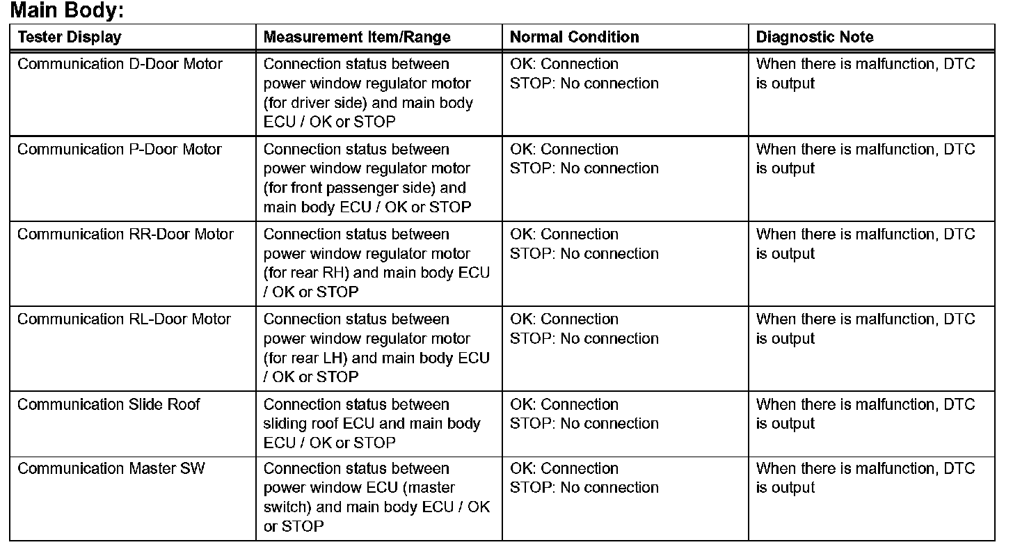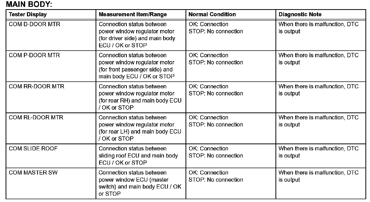 HINT: Using the intelligent tester or Techstream to read the DATA LIST allows values or status of switches, sensors, actuators and other items to be read without removing any parts. This non-intrusive inspection can be very useful because intermittent conditions or signals may be discovered before parts or wiring is disturbed. Reading the DATA LIST information early in troubleshooting is one way to save diagnostic time.