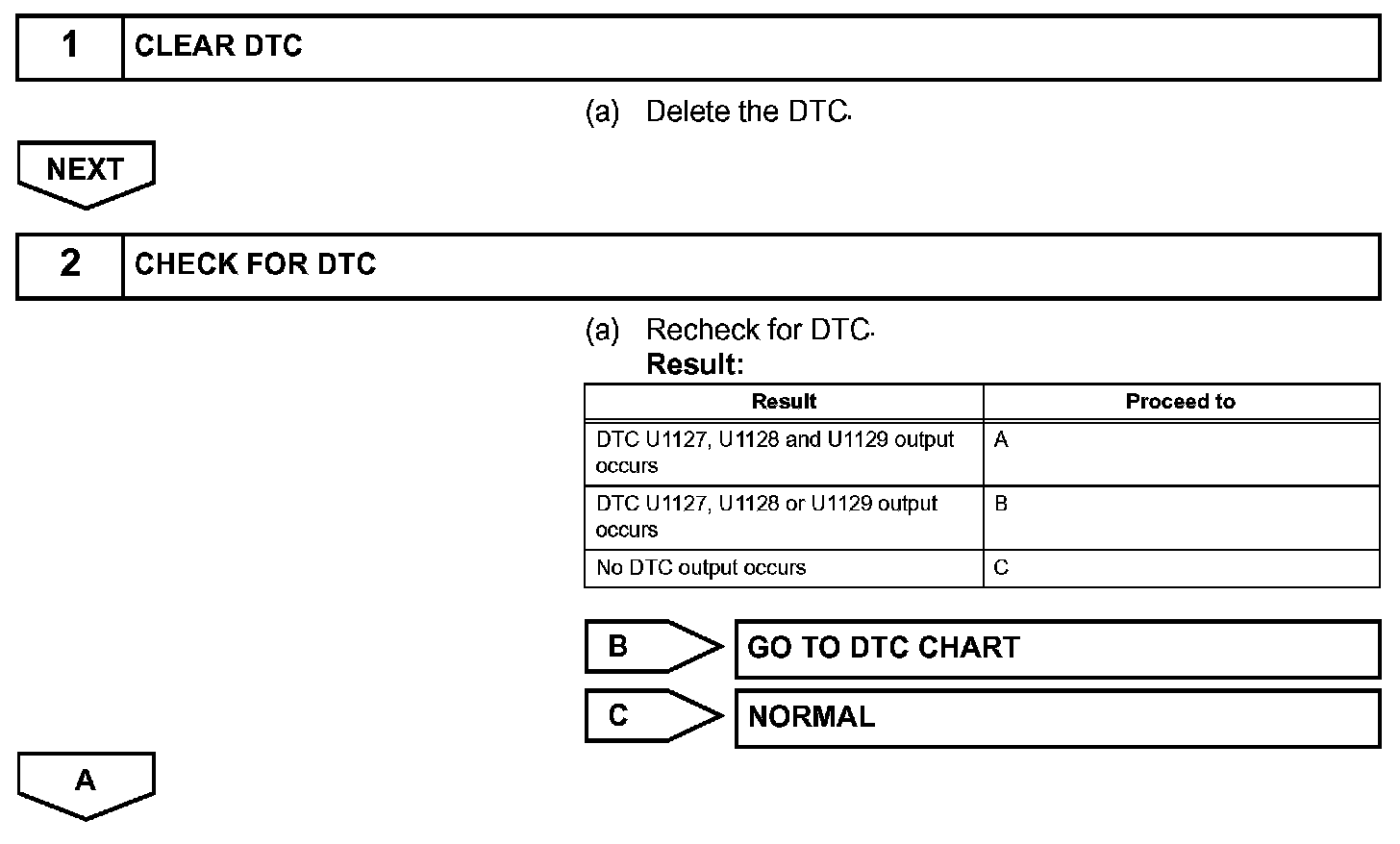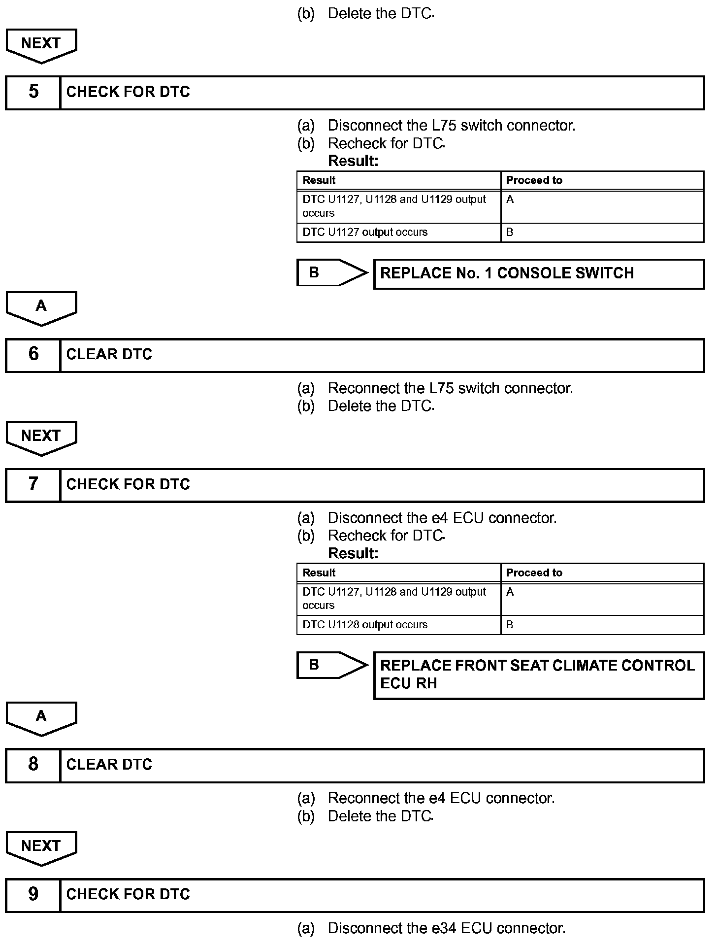 HINT: DTC U1127, U1128 and U1129 are output simultaneously when: 1. there is an open or short in the LIN communication bus between the switches on the driver side seat, and 2. their LIN communication bus stops.