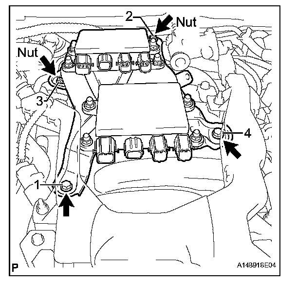 c. Tighten the 2 bolts and 2 nuts in the order shown in the illustration.