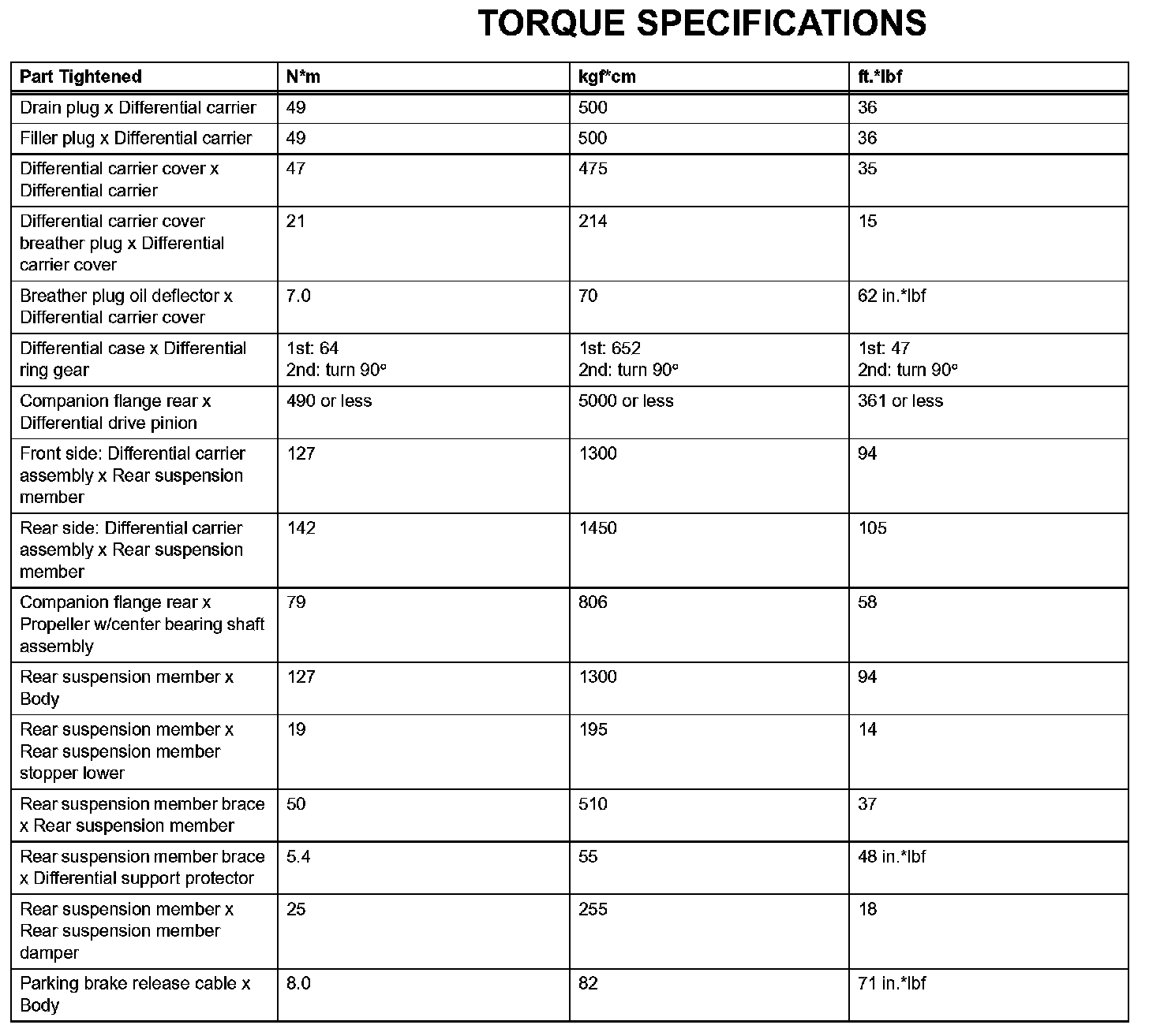 Differential - Torque Specifications: