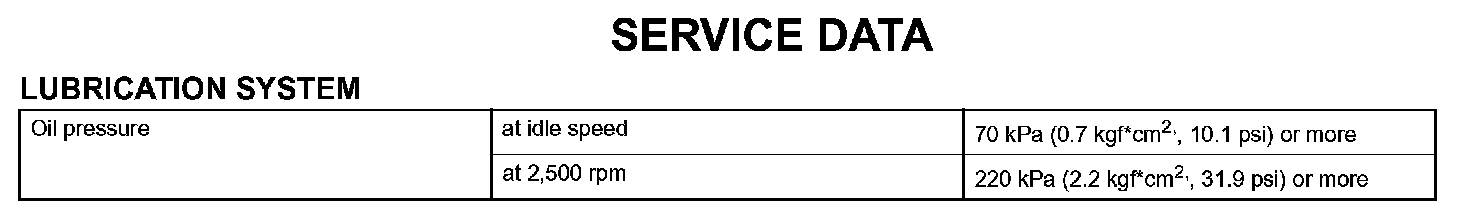Lubrication - Service Data: