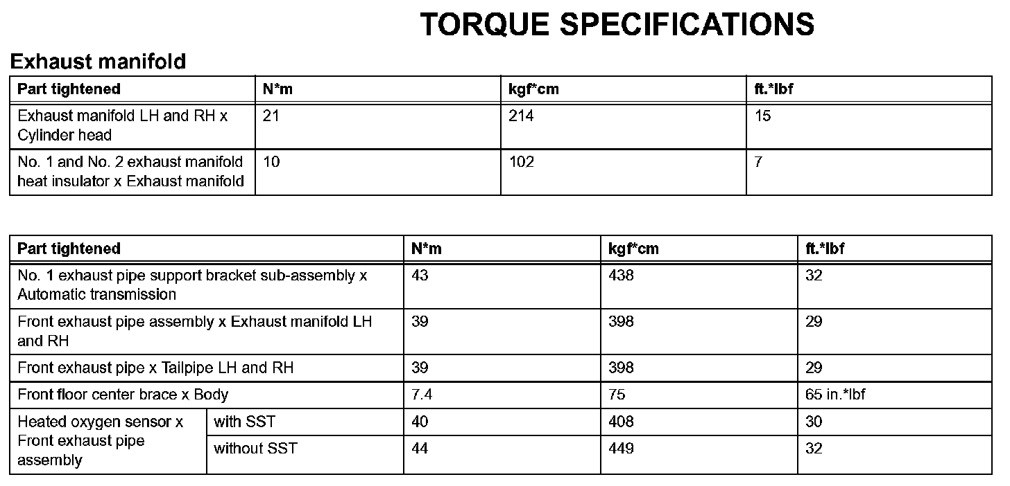 Exhaust - Torque Specifications: