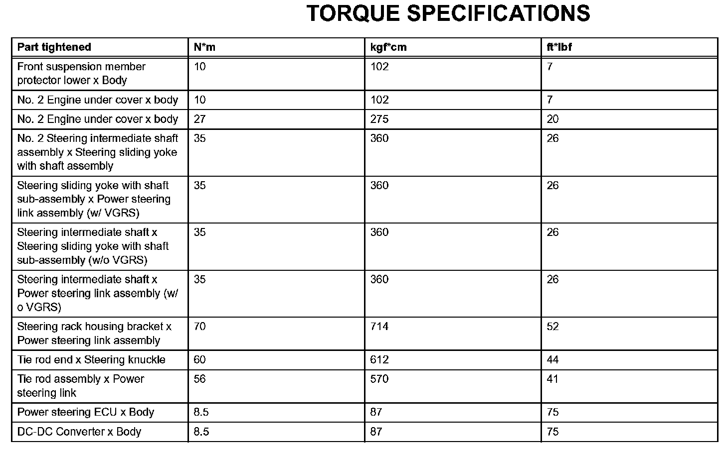 Power Steering - Torque Specifications: