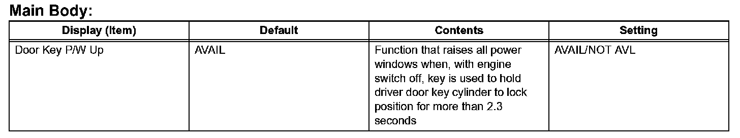 CUSTOMIZE PARAMETERS1. CUSTOMIZING FUNCTION WITH INTELLIGENT TESTER OR TECHSTREAM (REFERENCE)