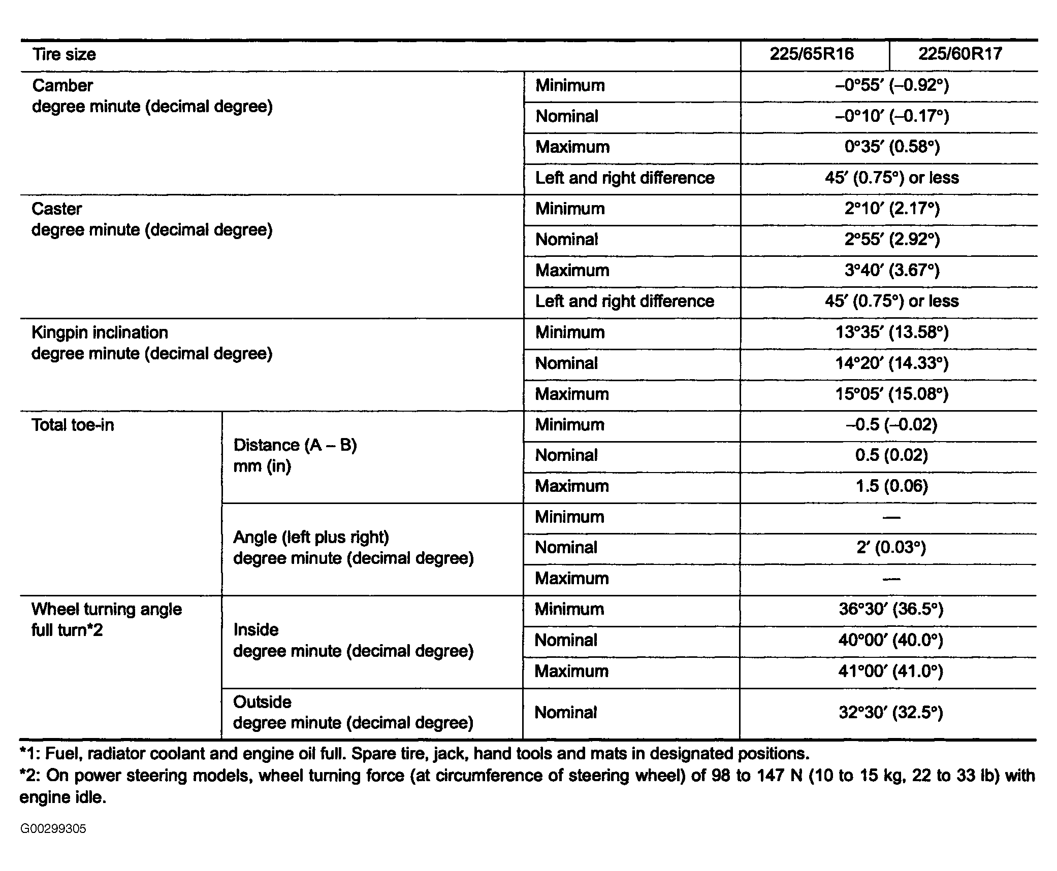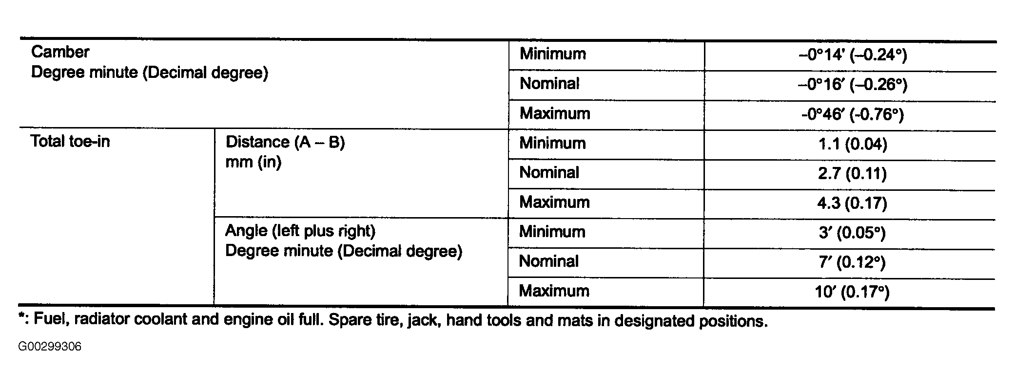 Fig 1: Front Wheel Alignment Specifications (Quest)