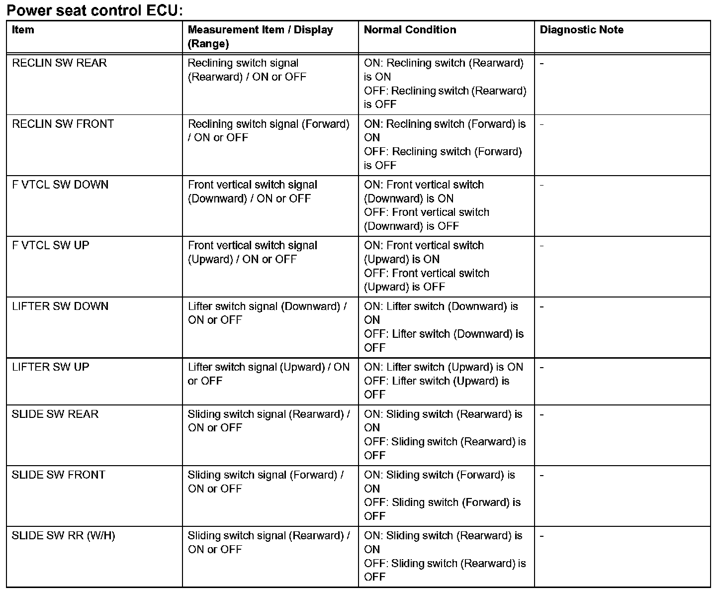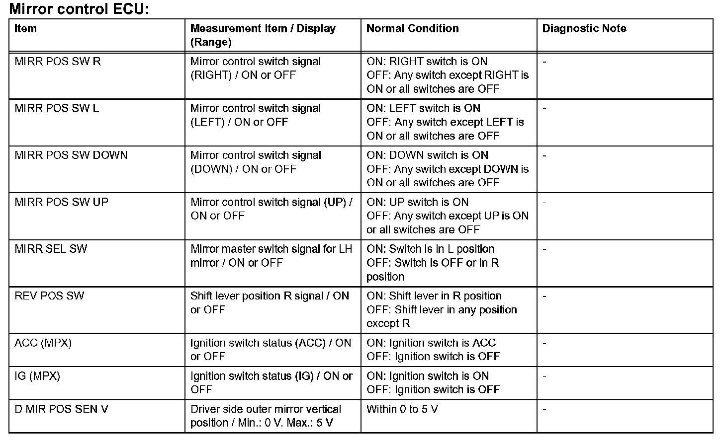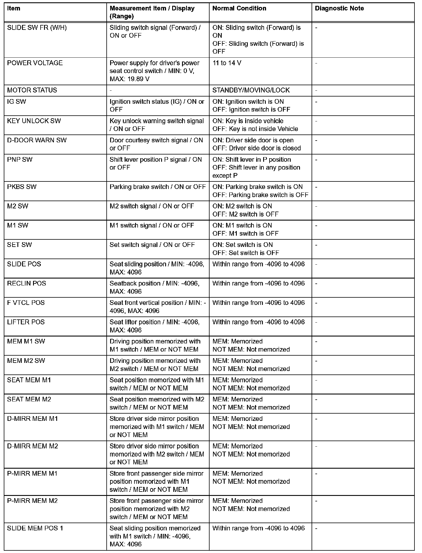 HINT: By the DATA LIST displayed on the intelligent tester, you can read the value of the switch, sensor, actuator and so on without removing any parts. Reading the DATA LIST as a first step of troubleshooting is one of the methods to save time.