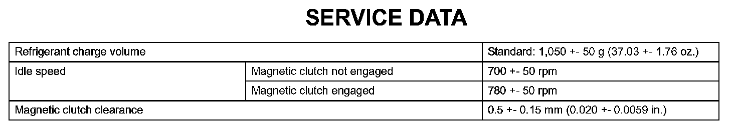 Air Conditioning - Service Data: