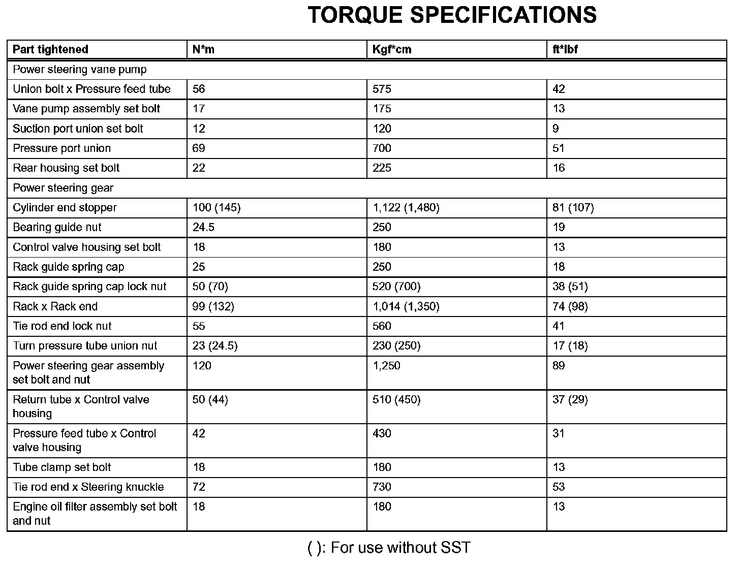 Power Steering - Torque Specifications: