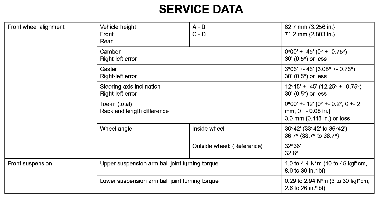 Suspension - Service Data: