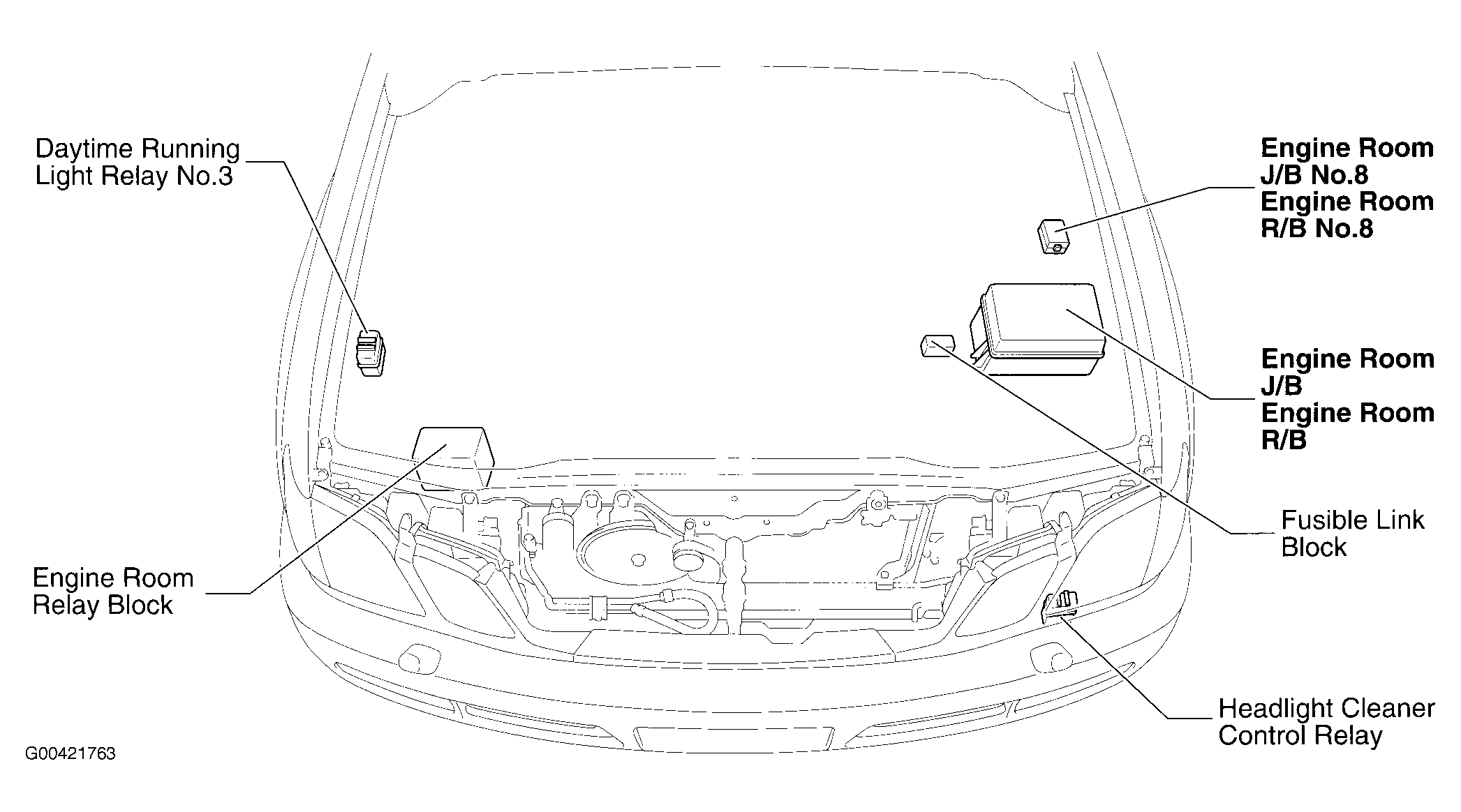 Engine Room R/B No. 8 Left side of engine compartment. See Figure.