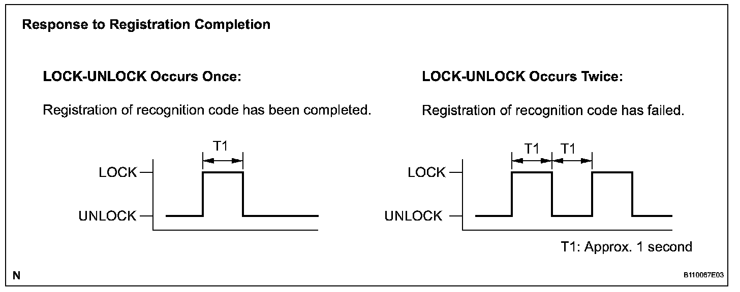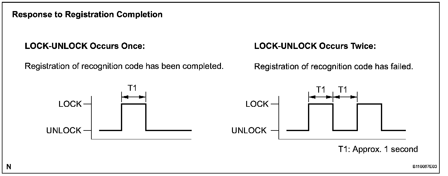 HINT: If the LOCK-UNLOCK operation is performed twice, registration of the recognition code has failed. Perform registration procedures from the beginning once again.