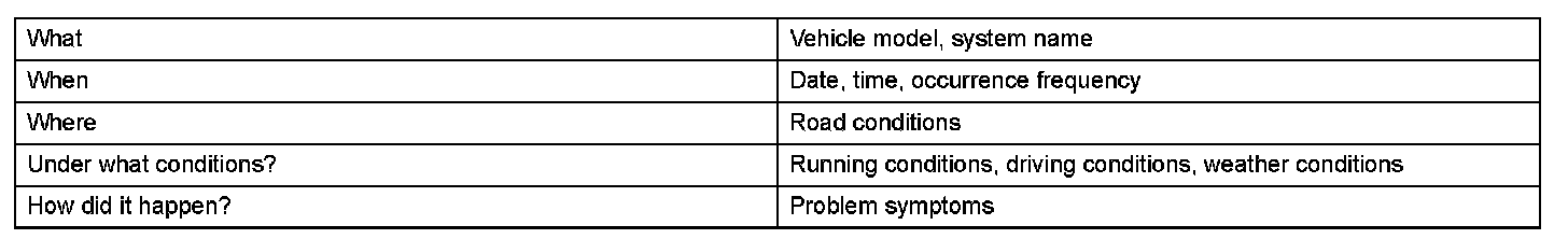 - In troubleshooting, confirm that the problem symptoms have been accurately identified. Preconceptions should be discarded in order to make an accurate judgment. To clearly understand what the problem symptoms are, it is extremely important to ask the customer about the problem and the conditions at the time the malfunction occurred.