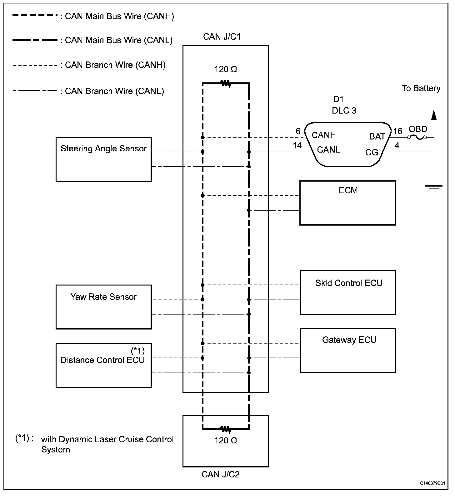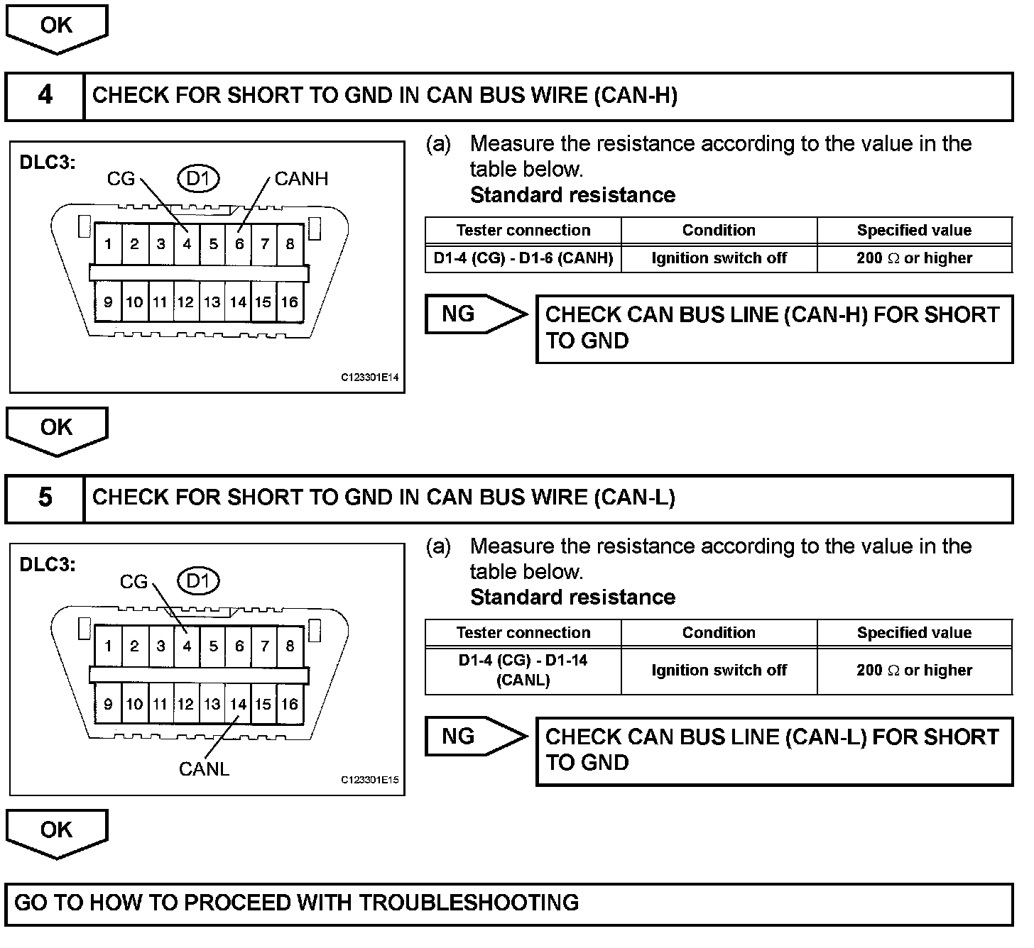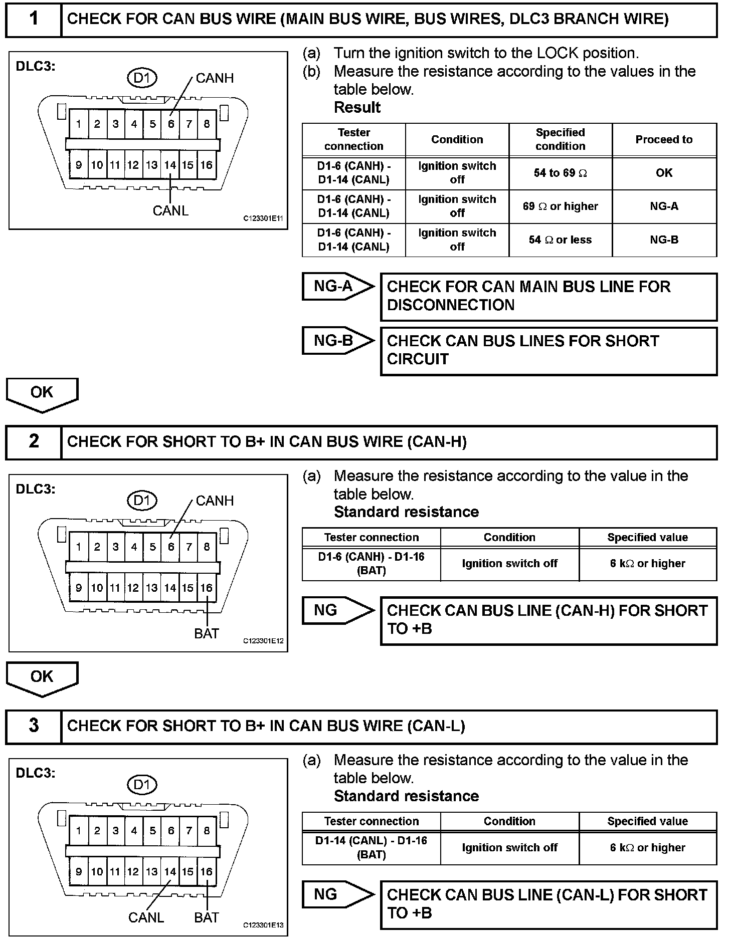 When any DTC for the CAN communication is output, first measure the resistance between the terminals of the DLC3 to specify the trouble area.