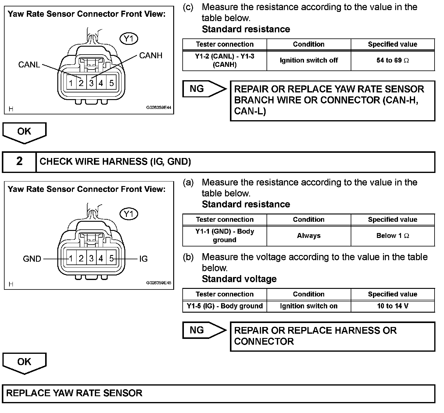 "YAW/DECELERAT" refers to the circuit that includes the yaw rate sensor.