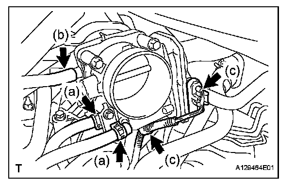 a. Disconnect the 2 water by-pass hoses from the throttle body.