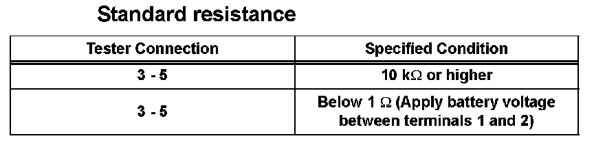Using an ohmmeter, measure the resistance according to the value(s) in the table.