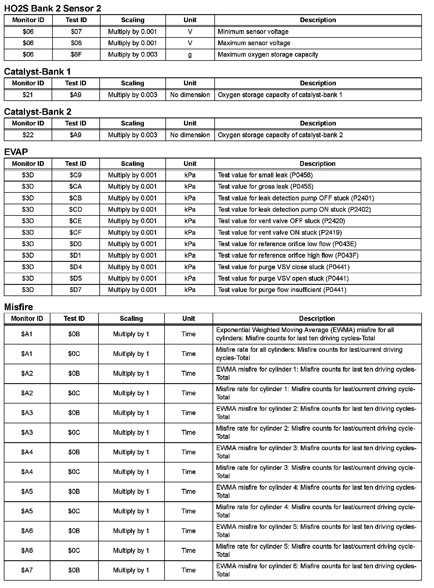 CHECKING MONITOR STATUSThe purpose of the monitor result (mode 06) is to allow access to the results for on-board diagnostic monitoring tests of specific components/systems that are not continuously monitored. Examples are catalyst, evaporative emission (EVAP) and thermostat.