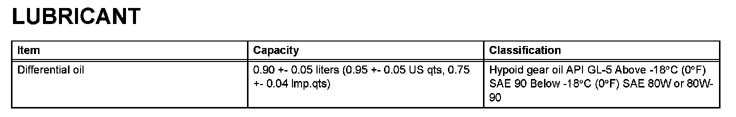Differential - Lubricant: