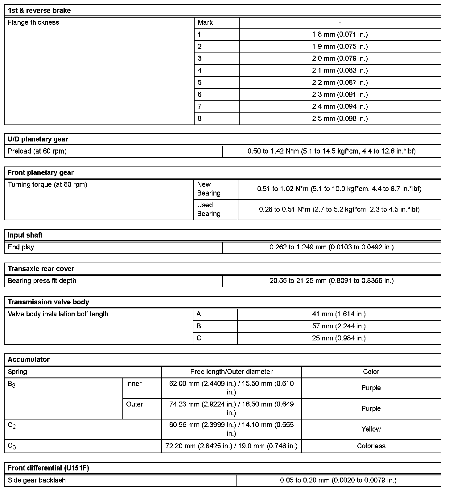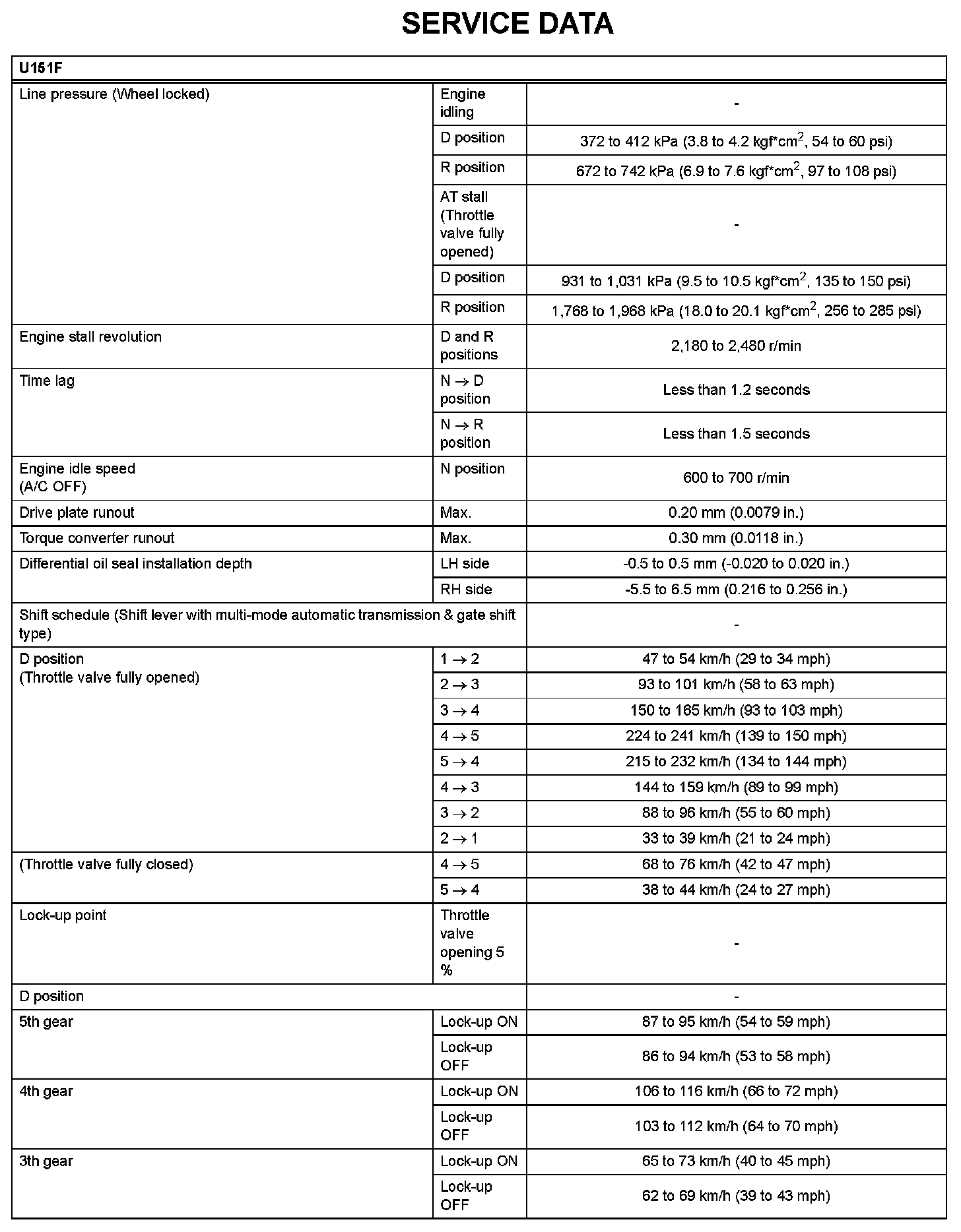 Automatic Transaxle - Service Data (Part 2):
