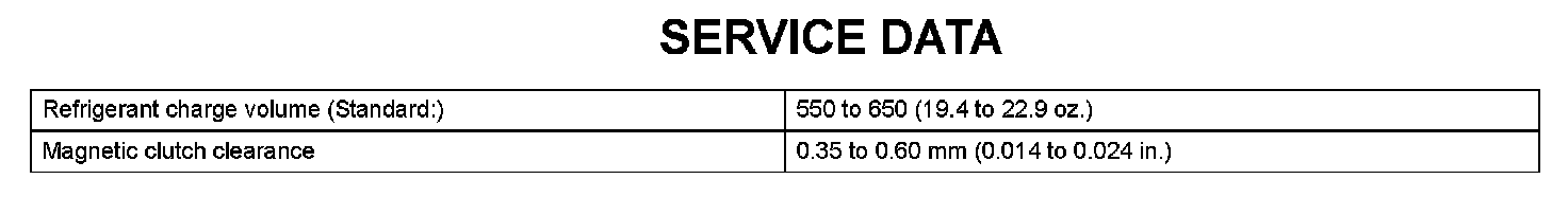 Air Conditioning - Service Data: