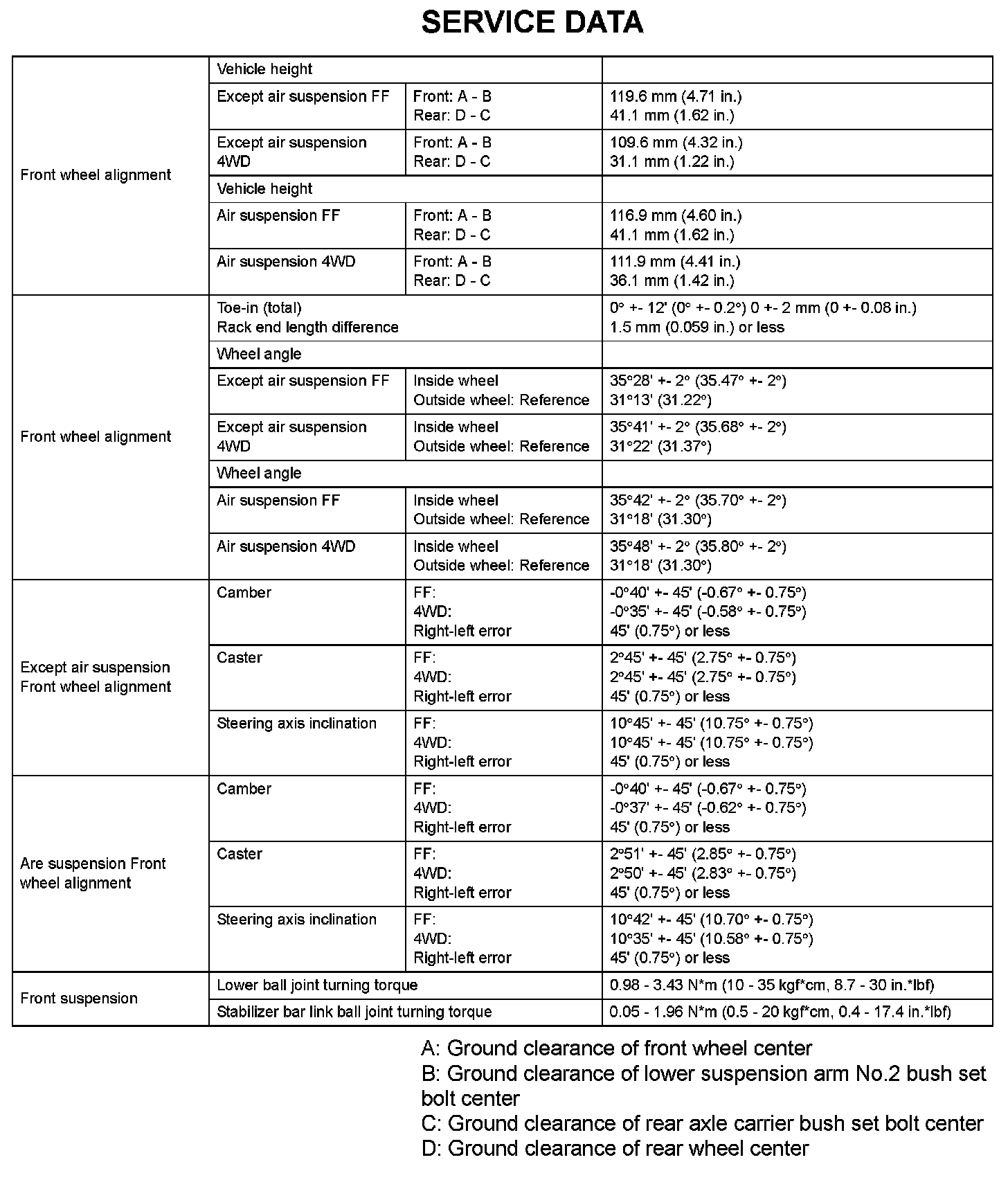 Suspension - Service Data (Part 1):