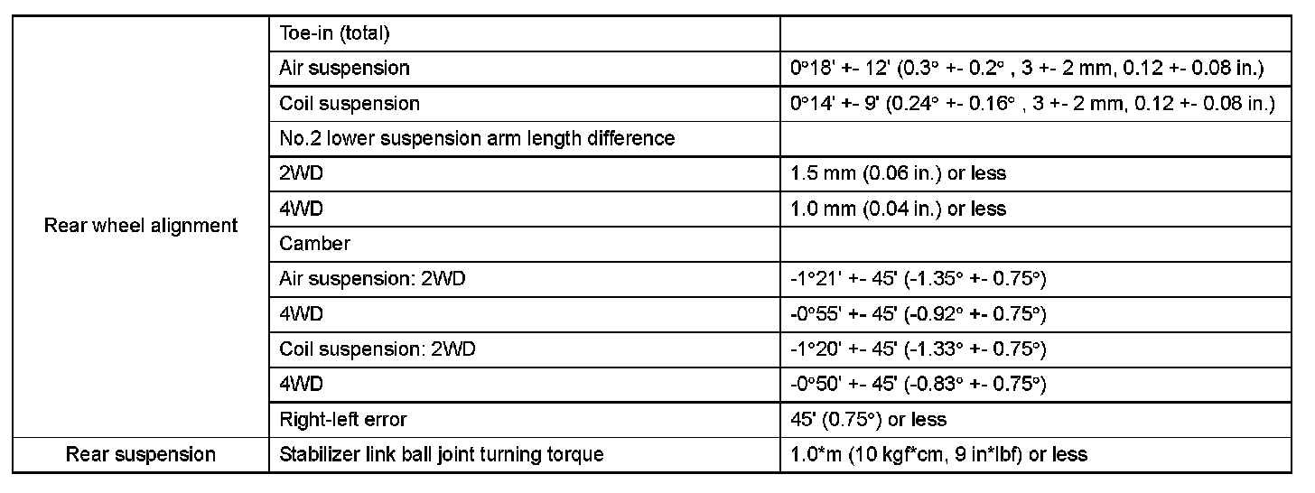 Suspension - Service Data (Part 2):
