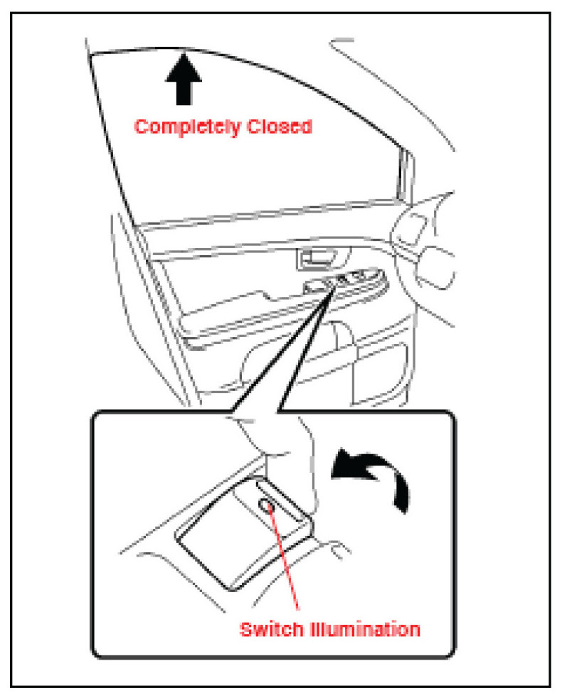 At this time, the Driver's door power window switch illumination changes from blinking to constant illumination.
