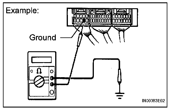 1. Measure the resistance between the ECU ground terminal and body ground.