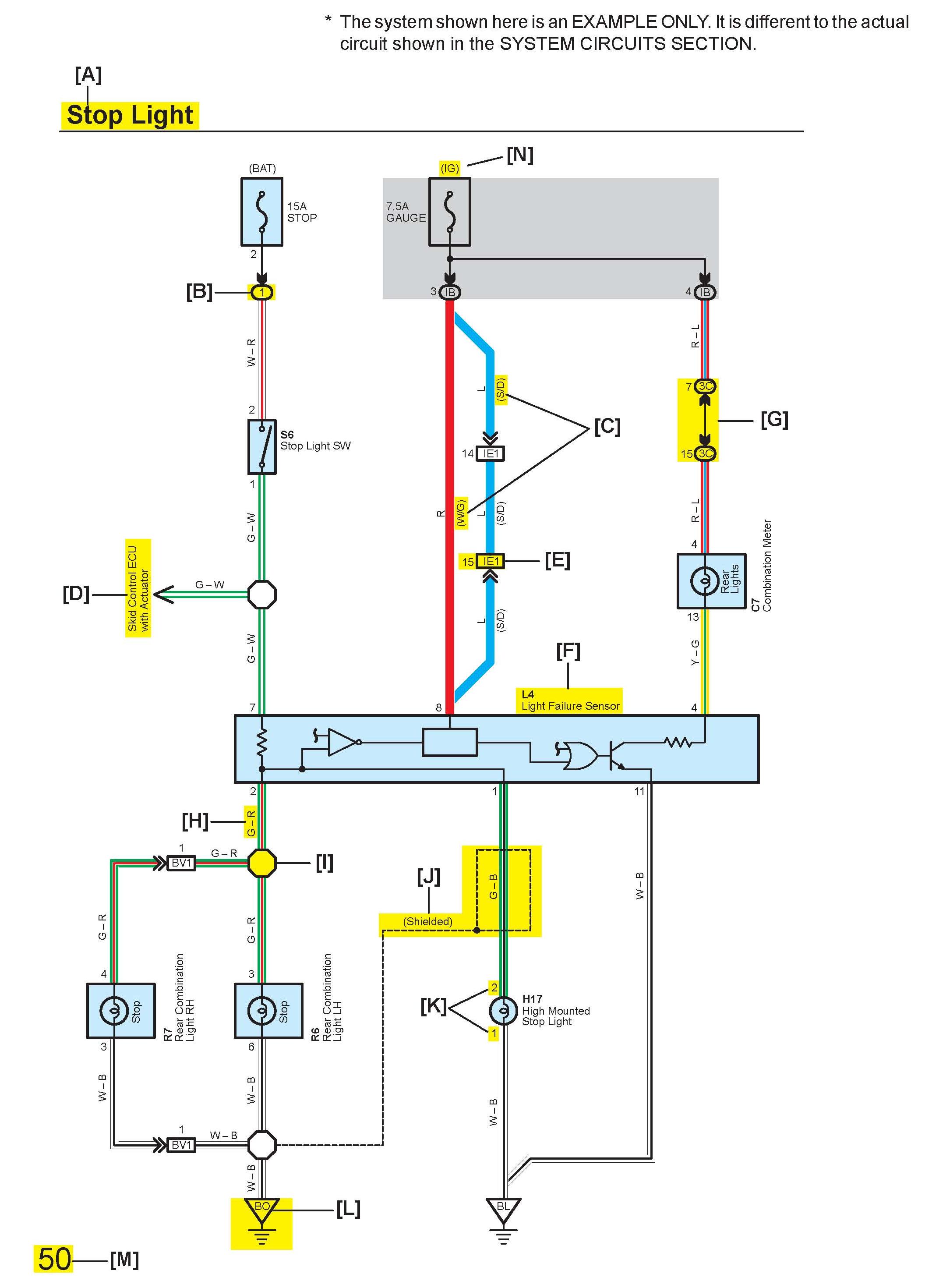 Current is applied at all times through the STOP fuse to TERMINAL 2 of the stop light SW.