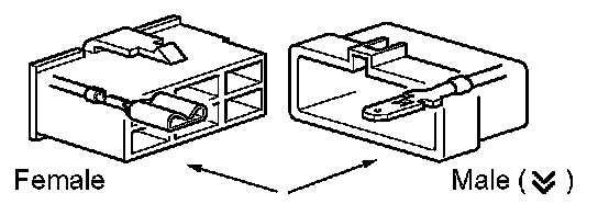 [E]: Indicates the wiring harness and wiring harness connector. The wiring harness with male terminal is shown with arrows.