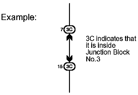 Example : Connector "3C" connects the Instrument Panel Wire and J/B No.3. It is described and is installed on the instrument panel left side.