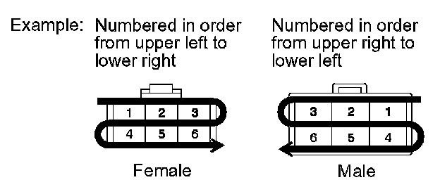 When more than one code has the first and second letters in common, followed by numbers (e.g, IH1, IH2), this indicates the same type of wiring harness and wiring harness connector.