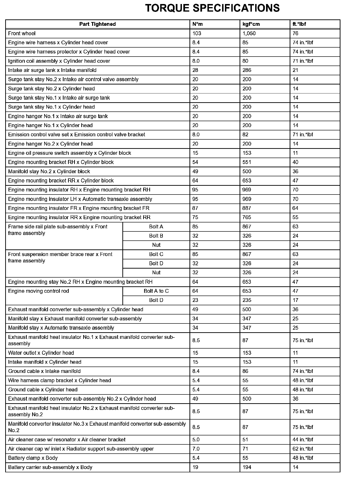 Engine Mechanical - Torque Specifications (Part 1):