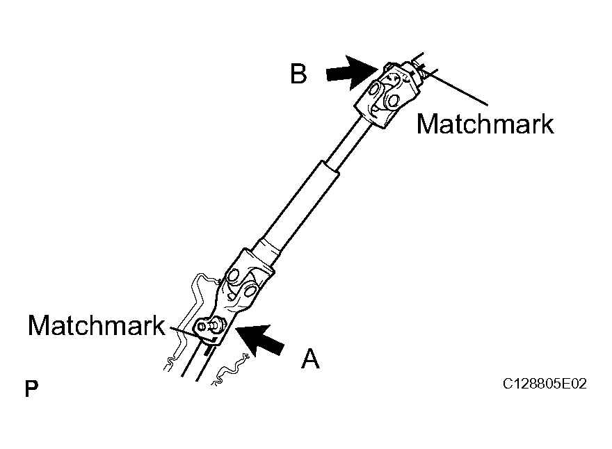 - Align the matchmarks on steering intermediate shaft and the steering sliding yoke and temporarily install them with bolt B. (See Fig 2).