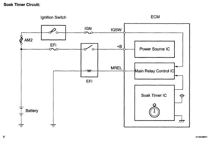 Soak timer Built into ECM. To ensure accurate EVAP monitor, measures 5 hours (+-15 minutes) after ignition switch turned OFF. This allows fuel to cool down, stabilizing EVAP pressure. When approximately 5 hours elapsed, ECM activates (refer to Fig 6).