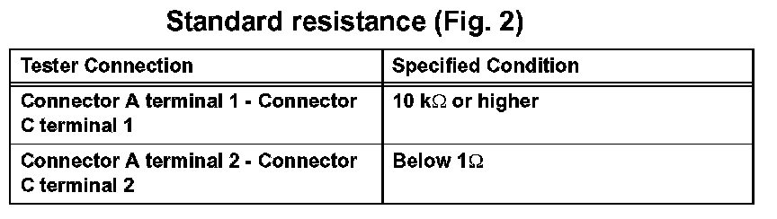 1. Disconnect connectors A and C and measure the resistance between the terminals of the connectors.