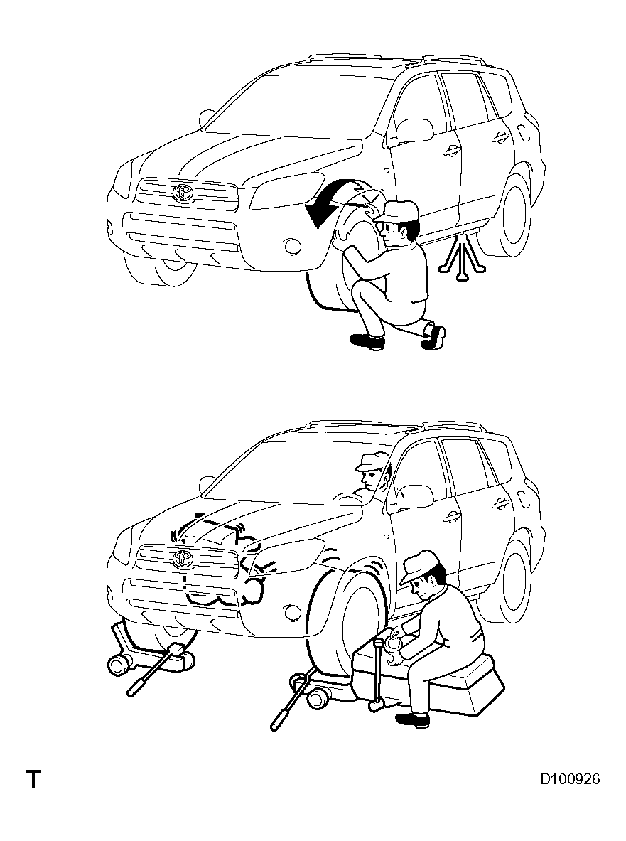 When performing on-vehicle wheel balancing on an active torque control 4WD vehicle, to prevent each wheel from being rotated at a different speed and in different directions, always be sure to observe the following precautions.