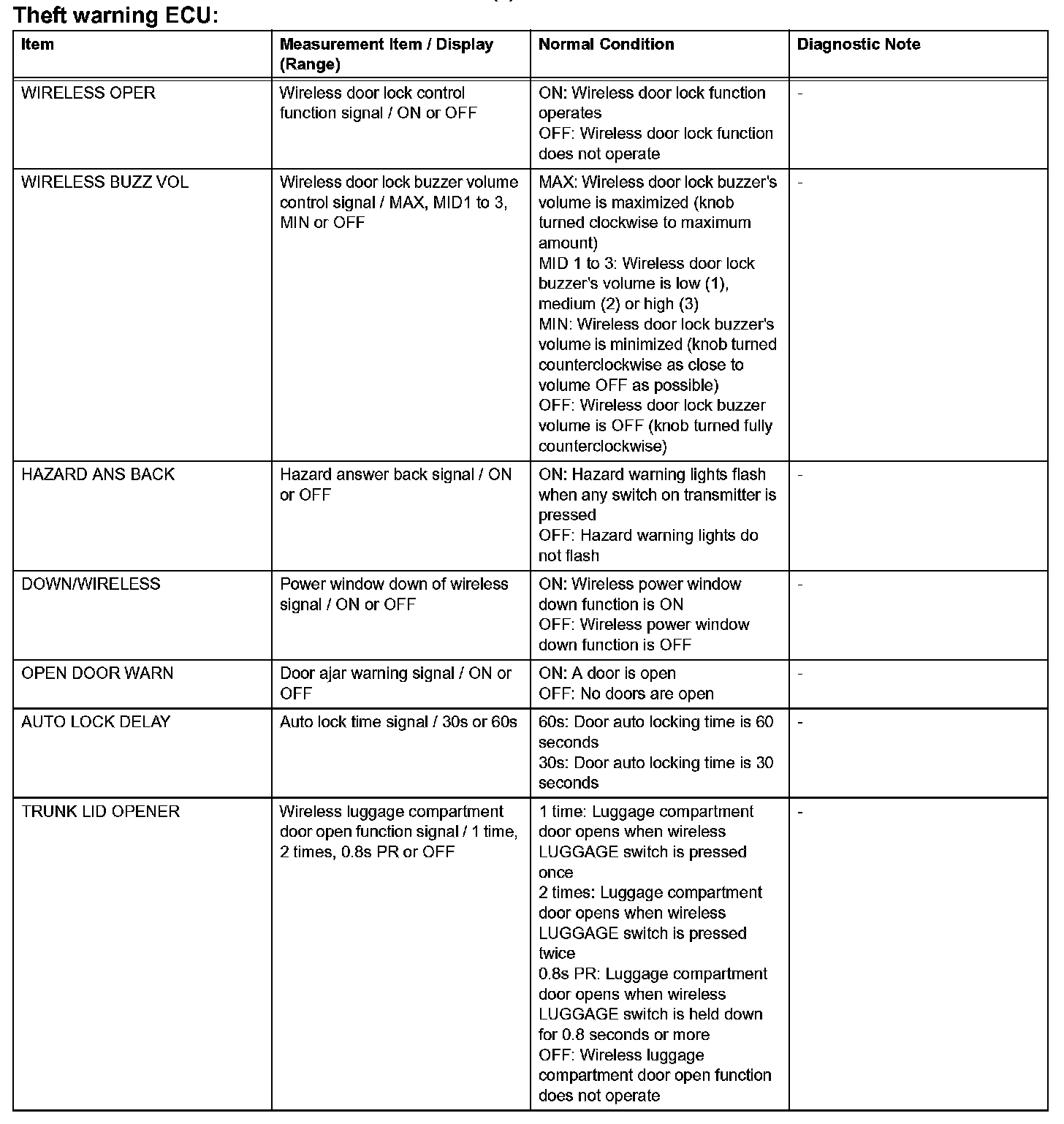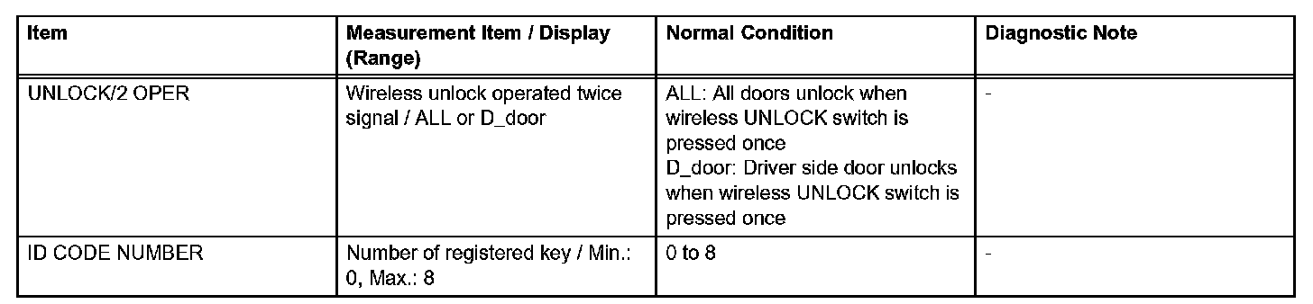 Home >> Lexus >> 2007 >> SC 430 V8-4.3L (3UZ-FE) >> Repair and Diagnosis >> Body and Frame >> Locks >> Keyless Entry >> Testing and Inspection >> Scan Tool Testing and Procedures >> Wireless Door Lock Control System >> Data List