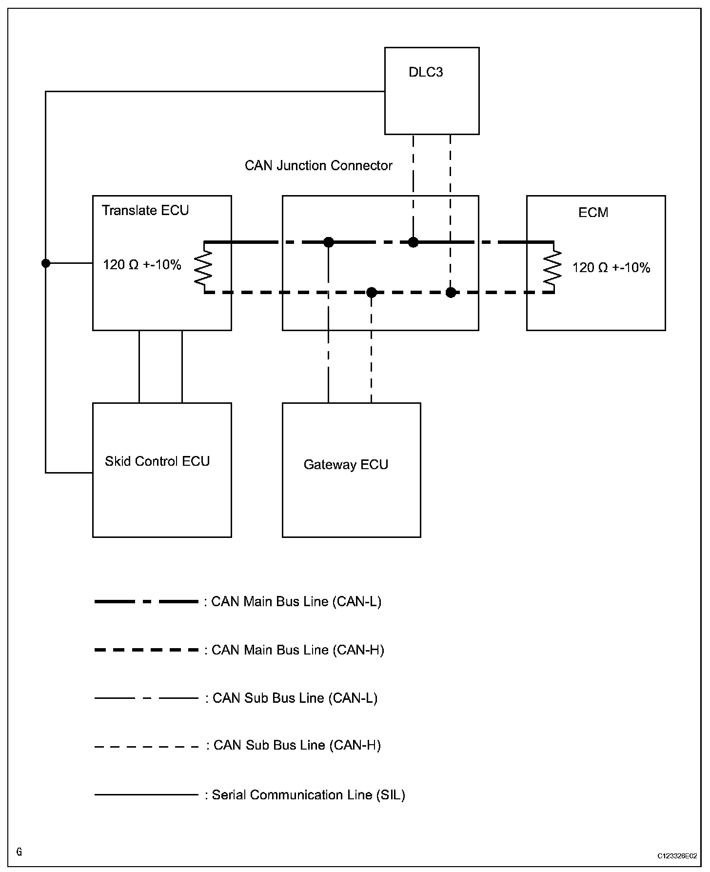 HINT: The ECM uses the CAN communication system instead of the conventional communication line (SIL) to perform DTC communication.